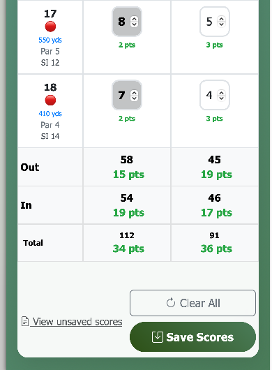 Tip: When you enter a score, the cursor automatically moves to the next player. Once all players' scores are entered for a hole, it advances to the next hole - no extra tapping required.